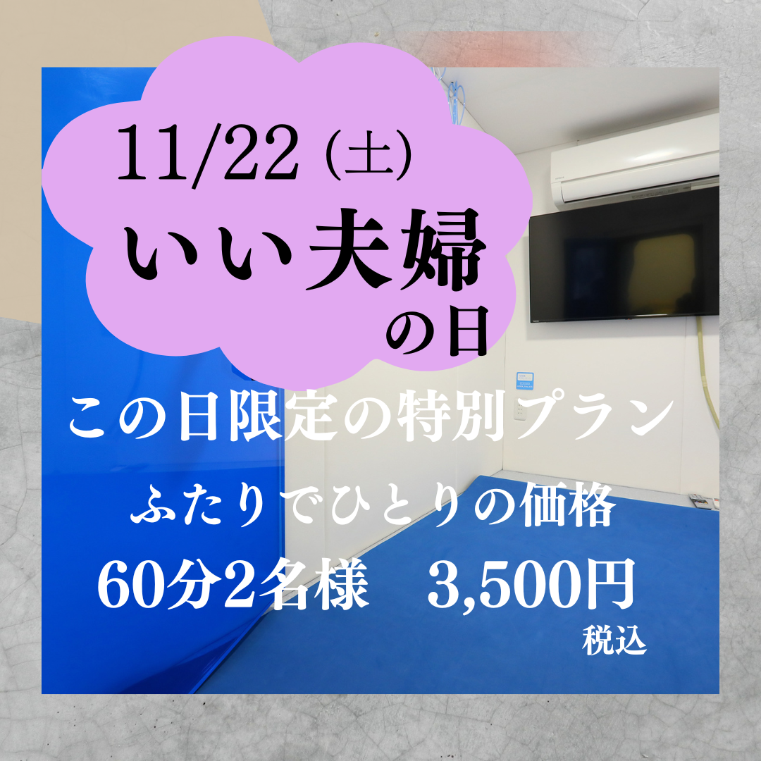 11月22日(土)いい夫婦の日にご夫婦で酸素カプセルでまったりしませんか?